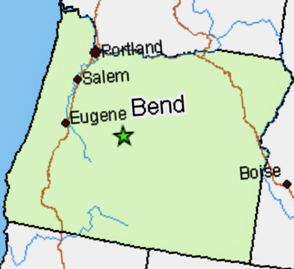 The rapidly growing city of Bend is located in central Oregon, about 163 miles from Portland. Part of Deschutes county, Bend is set along the Deschutes River. It is situated to the east of the Cascade Mountain Range, and bordered by the Deschutes National Forest to the southwest.