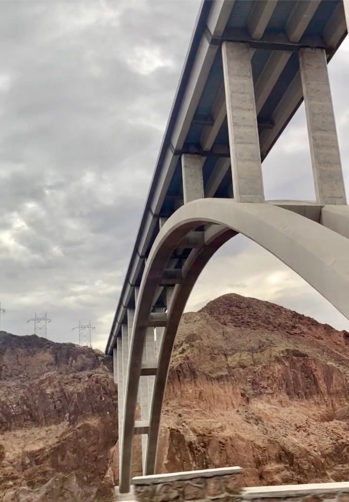 On arrival, we explored the Hoover Dam Bypass Bridge (Mike O’Callaghan-Pat Tillman Memorial Bridge). We parked in the designated lot nearby, and made our way out toward the bridge. It has a pedestrian path that runs alongside the vehicle roadway. As you make your way out you’re met with gale force winds and the most incredible views. Hang on to your hats and any loose items, or you’ll be sure to lose them! And for anyone who is afraid of heights or even a bit claustrophobic, precede with caution. But for the rest of you, this is a view you wont want to miss. The bridge sits approximately 1500 feet from the dam, and is the highest and longest single-span concrete arch bridge in the Western Hemisphere. Just being on the bridge itself is a very adrenaline evoking experience.