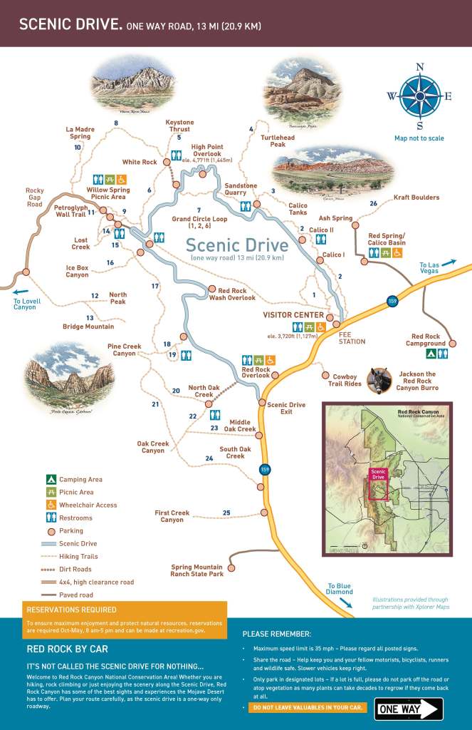 If you are planning a visit, it is important to know before you go. It takes about a half hour to get from the center of the strip to the conservation area, but the drive itself is stunning. Once you arrive, you will see a large gated checkpoint with the visitors center and fee station. The Red Rock Canyon National Conservation Area features a one way 13-mile scenic drive that is accessed via reservation. You have to do the entirety of the drive to exit, and you cannot access the trail system without doing the drive, so the drive and the reservations are necessitates. Reservations can be made ahead online and are only $20 a vehicle or $5 per person. Once you check in, you are free to begin the drive.