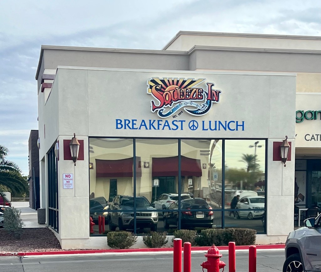 For Breakfast we loved Squeeze In (https://squeezein.com/). This restaurant is not located on the strip, but it came highly recommended. It’s a favorite to locals, and was even featured on Food Network. Let us tell you, it was definitely worth the hype. There is no shortage of options, and the food and drinks were out of this world. Zach got the giant Bloody Mary which came topped with bacon, a grilled cheese sandwich, peppers, olives, celery, and all the fixins. Squeeze in definitely gives casual, relaxed, diner vibes, so no need to dress up, and it also wont break the bank. It is the perfect laid back breakfast spot, and we would definitely go back!